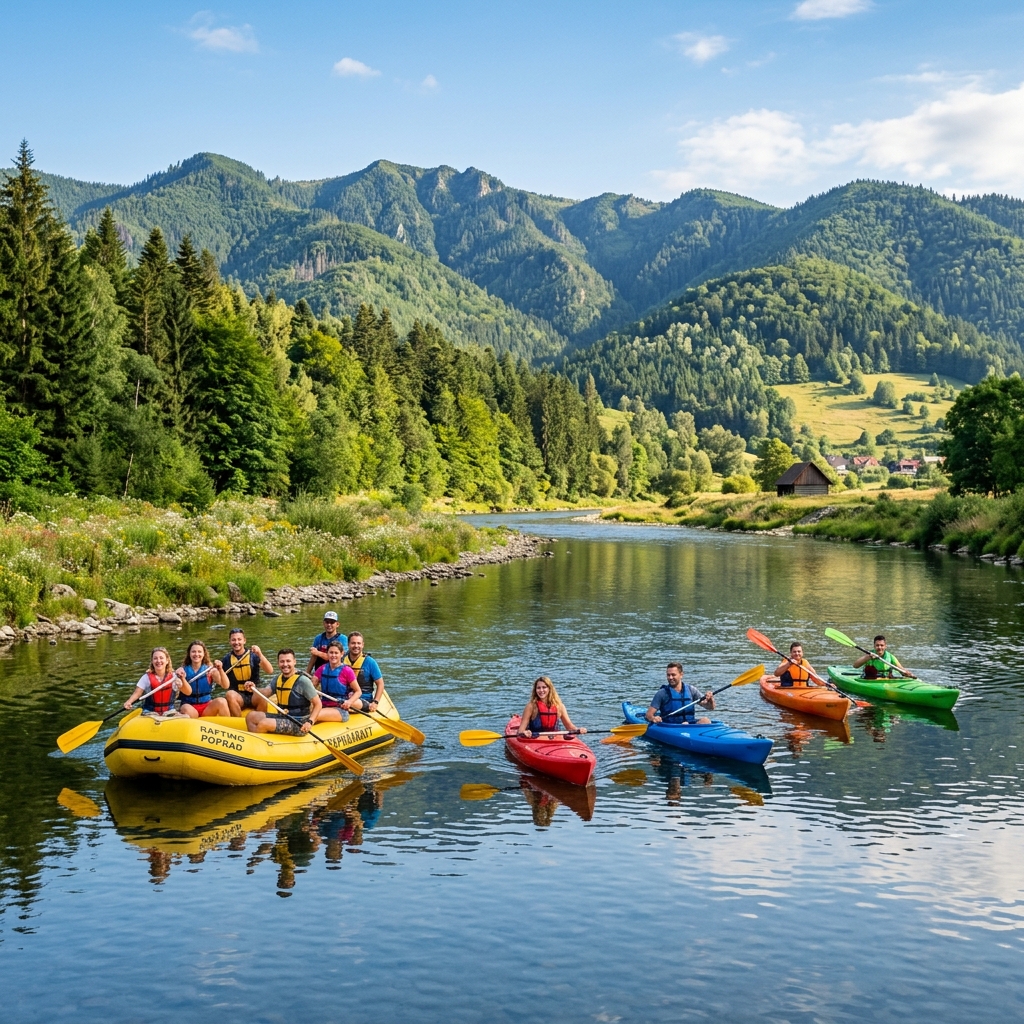 Wyrusz w podróż malowniczą doliną Popradu. Do wyboru stabilne pontony (idealne dla rodzin) lub kajaki. Spływ odbywa się pod okiem instruktorów Maxpower, co gwarantuje pełne bezpieczeństwo i piękne widoki z perspektywy rzeki.